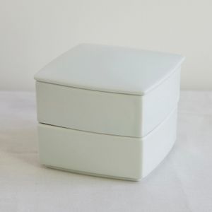 マットな質感の釉薬を使っているため、濃淡に個体差があり、釉薬の成分ムラなどがみられることがあります。また、重なりが良いように仕上げていますが、四角いお重は焼成時にゆがみが出やすく、1点ずつ個体差があります。少しガタつきが感じられることもありますので、ご了承いただけますと幸いです。
