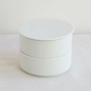こちらは、「2段セット」の白と朱がセットになっており、個別に購入するよりも少しお得にお求めいただけます。紅白の色使いはハレの日にもぴったり。いずれもマットな質感なので、料理を選ばずお使いいただけます。お正月はもちろん、普段使いしやすいお重です。