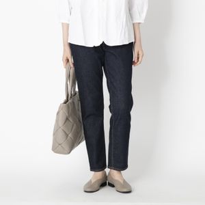 D.M.Gは良質なデニムにこだわり、厳しい品質管理のもと、縫製・洗い加工を施しています。こちらのデニムは、大人の女性もすっきり穿いて頂けるこだわりのパターンとストレッチの効いた快適な着心地が自慢。生地が固そうに見えるのですが、脚を通すと柔らかさに驚きます。スリムなシルエットのデニムを敬遠していた方にも是非お試しいただきたい1本です。