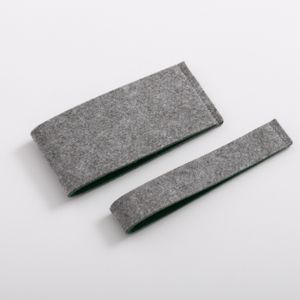 外側がライトグレー、内側がグリーンのツートンカラーで、グラスにセットした時にもカラーリングが映えます。やわらかいフェルト製で、ガラスをやさしく包みます。