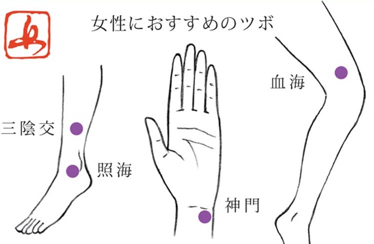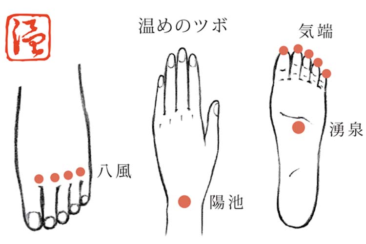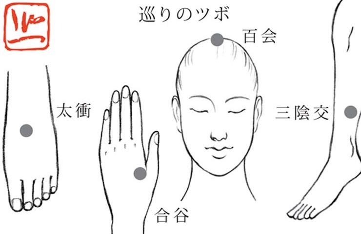 ツボの場所は、上図をご参考になさってください。不調に対応するツボや、ご自分が気持ちいいと感じる部位にお使いください。
