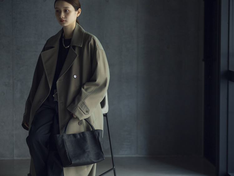 ARAI CORONのシリーズは、バッグ自体に独特なシワ感があり、どこかニュアンスのある色味なので、唯一無二の空気を放っています。
