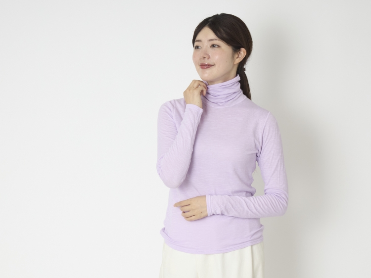 肌触りが良く、優しく包み込まれるような着心地のタートルネックカットソーは、これまで、肌ストレスや締め付け感によって、タートルネックを避けてきたという方にも是非おすすめしたい一品です。