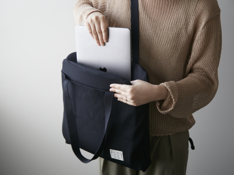 そして、実際にカバンとして使用可能なのもすごいところ。クッション性が高いので、パソコンやカメラといった繊細な機器を入れるのにもちょうど良いんです。移動時はパソコン用のカバンとして、仕事中はクッションとして使えるという二役をこなします。