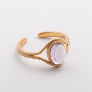 オーバル型の天然石の周りを、細いゴールドのラインで縁取ったデザインは、あえてラインの艶を消し、マットな質感にする事で、大人っぽい雰囲気が漂います。
