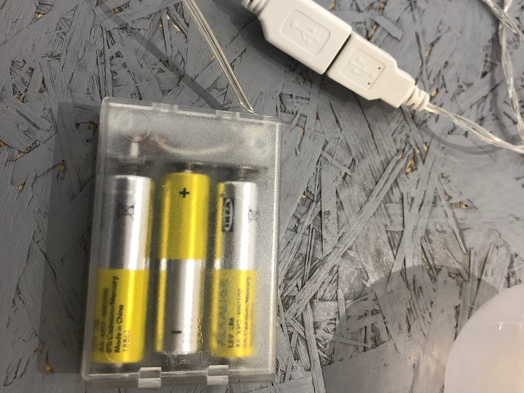 空いた壁に気軽に飾れるといっても照明機能がある以上、気になるのは電源です。こちらはUSB電源と電池(単三電池3本)を選べる仕様。電池使用であればコンセントの位置を気にせず飾ることが可能です。