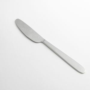 シリーズで展開されているカトラリーの多くは、種類は違っても柄の太さは共通であることがほとんどです。でもスプーンもフォークも、ナイフも、使い道が違えば持ち方も異なります。そこでこちらは、カトラリーごとの持ちやすさを考えて、柄の厚みを変えているのも特徴。専用の金型でプレスして、カトラリー別に適したバランスに仕上げられています。
