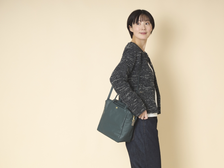 縫い目を極力表に出さない仕立てや端正なデザインのおかげで、布製でもカジュアルになり過ぎず、きれいめスタイルによく似合います。普段使いだけでなく、お仕事用にも使っていただけるバッグです。