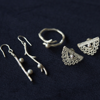 アジサイの花弁のモチーフは可愛らしい雰囲気がありますが、繊細さや高級感も感じられるのがこのイヤリングの魅力です。普段のカジュアルな服装にはもちろん、少し改まったシーンにもおすすめです。量産のアクセサリーでは絶対にできない、繊細な手仕事が堪能できる一品です。