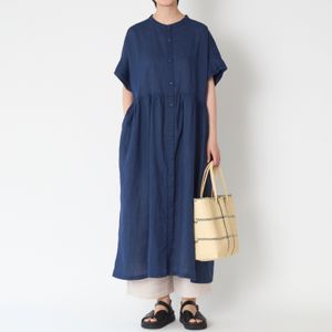 細部までしっかりディティールを効かせたデザインで、1枚かぶるだけできれい見えが叶うワンピース。リネン100%の生地を使用しており、締め付け感のないシルエットもあいまって、風通しよく爽やかな着心地です。ワンピースとしてはもちろん、ロング丈の羽織りとしても活躍するので、ぜひ夏場のワードローブに加えてみてください。