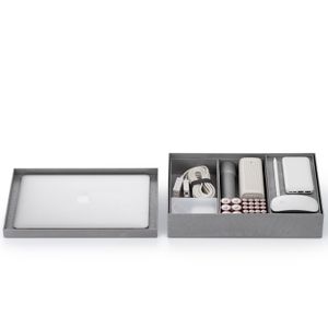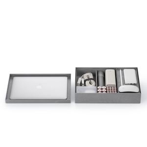 縦でも横でも使える為、置きたい場所の奥行きに合わせられるのも便利なところ。組み合わせのできるボックス2型とインナー2型、それぞれのフタになるトレーの展開です。