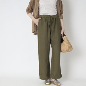 リネン生地の服は、カジュアルな要素が強くなりがちですが、上質なリネンが美しいドレープを生んでくれるので、ラフになりすぎないのもいいところ。洗いざらしのラフな感じもいいですが、アイロンで皺を伸ばしてキレイめに穿けるのもポイントです。