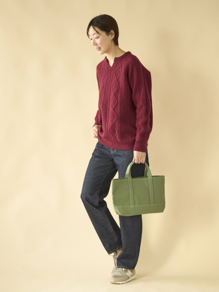 柔らかくてもしっかりした生地感なので、荷物をたくさん入れても問題ありません。カジュアルすぎないきれい目な帆布なので、大人女性も持ちやすい上品な雰囲気です。