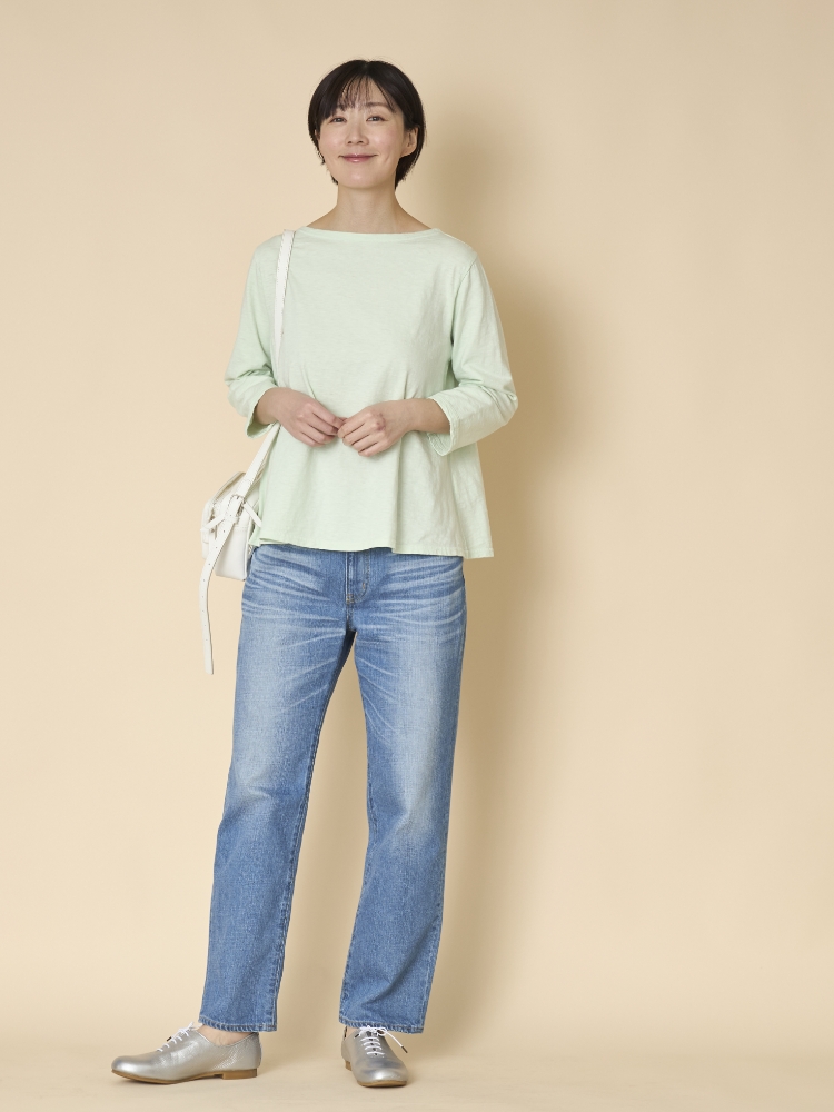 気になるポイントをカバーしてくれて、楽なのに、きちんと感を出してくれるこのカットソーは、オールシーズン活躍する一着になりそうです。