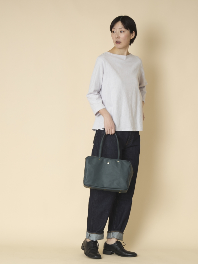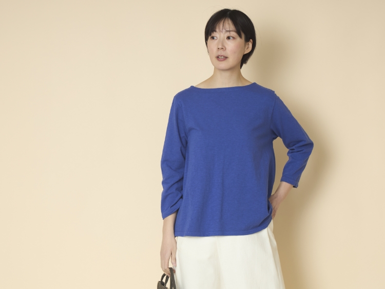 襟ぐりは、定番のコットンボートネックプルオーバーよりもシンプルでさらっとした仕様です。