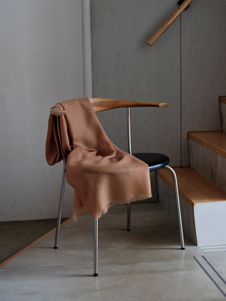 「KUNA」のベビーアルパカストールは、柔らかく上質で合わせる装いやシーンを選びません。そして比較的大判だからこそ、様々な巻き方や着こなしを楽しめるのも使いやすさのひとつです。ゆったりとエレガントにショールのように羽織ってもさまになります。なにより毛玉になりにくいから、毎日ヘビーに使っても安心。秋冬の定番アイテムに加えていただけたら幸いです。