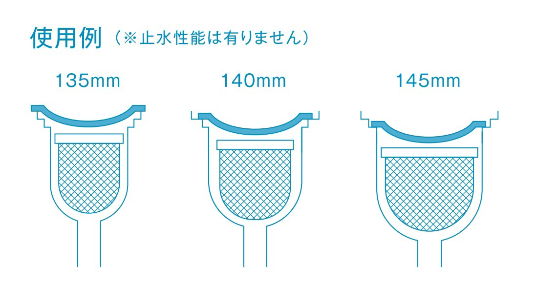 いずれのサイズも、直径135~145mmまでの排水口に対応しています。