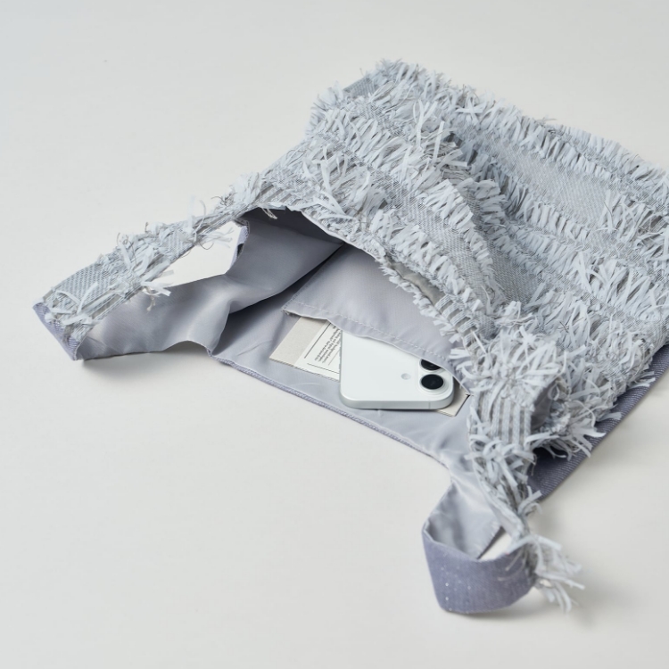 2026年1月入荷分より、つかい手のリクエストにお応えして内ポケットがつきました。また、新柄の「fluffy gray × gray glitter」も入荷しています。