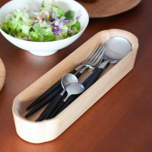 カトラリーケースにも様々な物があります。ただ、多くはお手入れがしやすいプラスチック製。食卓においては、やや味気なく淡泊な印象を醸し出してしまうかもしれません。まるで木の器のようなこちらは、どんな食卓にも馴染むので、日常使いにも特別な日にも、頼もしく活躍してくれると思います。