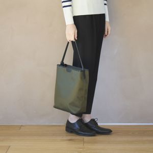 こちらは多くのハイブランドでも採用されているイタリアの老舗メーカー・リモンタ社の高級ナイロン「デイビス」で作られたトートバッグ。この生地は世界的なブランドでも使用されており、美しさ・機能・強度・耐久性は他のナイロンと比較しても群を抜いています。