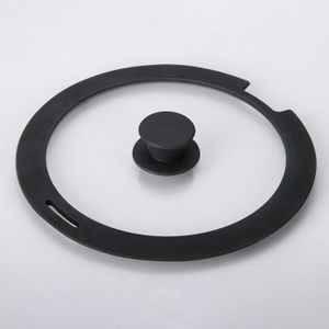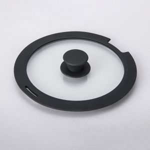 蓋は別売りです。22cm、24cmの2サイズ展開で、フライパン深型22cm、深型24cmにそれぞれ対応しています(フライパン20cm・26cm・28cmに対応する蓋は販売しておりません)。透明なガラス蓋で中身が見やすく、火の通りが確認できます。縁の部分はシリコンになっています。