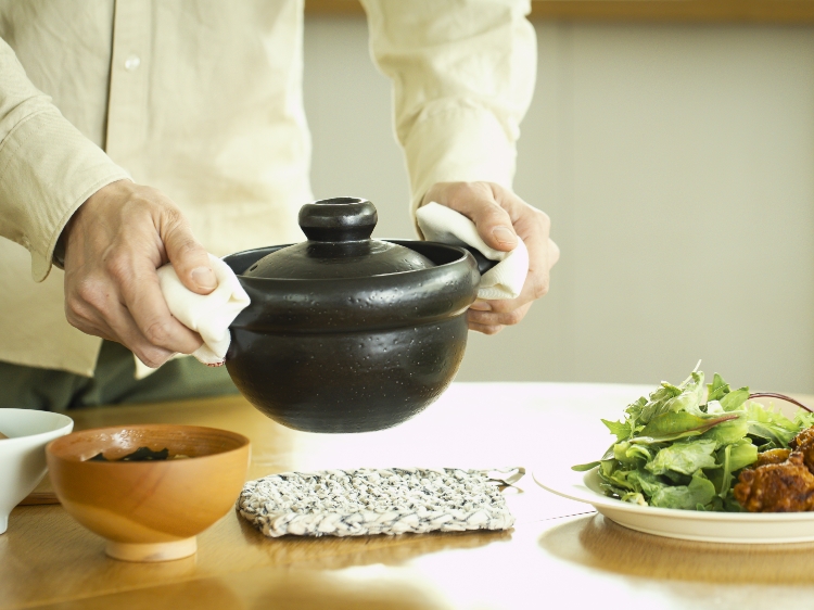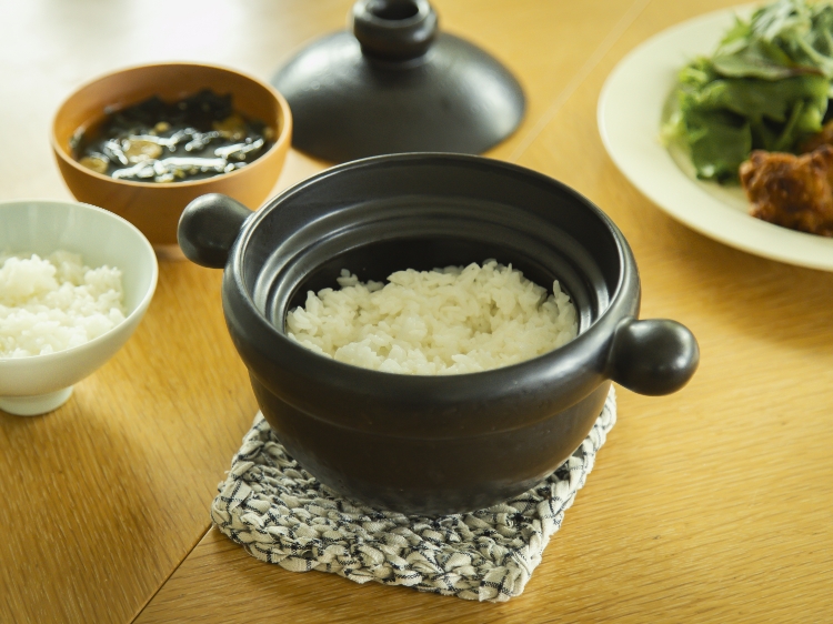 中でも土鍋は遠赤外線効果でお米の芯まで熱が通りやすいこと、そして他の素材と比べて蓄熱性と保温性が高い分、火から下しても熱の対流が長く続くところがポイント。余熱でじっくりと蒸らすだけで、いつものお米が格段においしくレベルアップします。