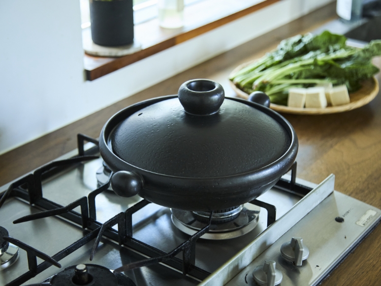 一般的なものよりも浅いの丸土鍋は、食卓に置いた時の圧迫感も控えめ。煮物や冷しゃぶ、蒸し料理、できるメニューの幅も広いから、一年中重宝すること間違いなしです。