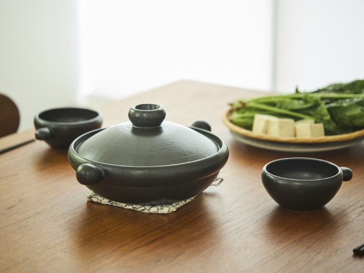 こちらの良さは、この問題を素材のチカラで解決してくれるところにもあります。陶器の素材となっているのは、萬古焼が作られる地域のそばで採れる、蓄熱性と保温性に優れた土。その実力は、一度煮えれば火を止めてもしばらく余熱でぐつぐつ状態が続く程です。加えて、持ち手が丸く大きめで握りやすいので、食卓への移動も安心。肉じゃがのような煮物も、そのまま食卓に出せばあたたかいままお楽しみいただけます。