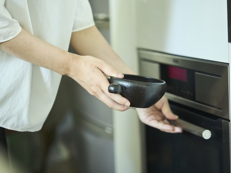 土鍋と同じ材質の耐熱陶器なので、オーブン、電子レンジ、そして五徳に乗ればガスコンロでも使うことができます。萬古焼が作られている地域のそばで採れる、蓄熱性と保温性が高い土を使っているので、熱々の状態が長く続きます。