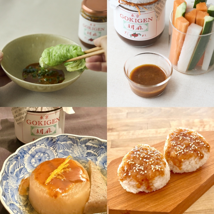 旨味たっぷりの本格派で、ただかけるだけで一品が決まる 「東京GOKIGEN胡麻だれ」。「食べた人が何だか自然とご機嫌になったら」という思いを込めて、 この名前が付けられました。