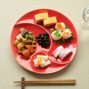 紅白で揃えると普段使いはもちろん、正月などハレの日にも華やかに。少しづつ食材を盛り付けるだけでもさまになりますよ。