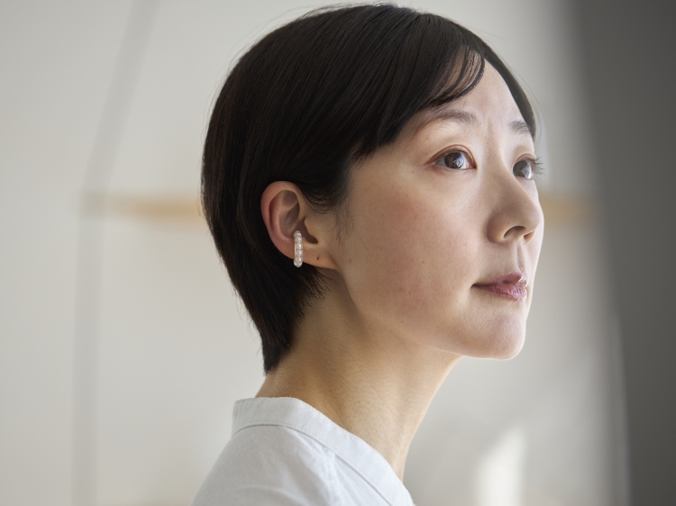 こちらのイヤーカフでいうと、中に閉じ込めたエコパールはまるで水の中に浮かんでいるように、そして整然と等間隔に並んでいますが(ちなみに、天然の真珠は個体差があるため、あえて人工真珠であるエコパールを使用しているそうです)、これはまさに熟練の職人にしかできない技術なのだそうです。気軽につけられるカジュアルさがありながら品があるのは、このような技術によるものなんですね。