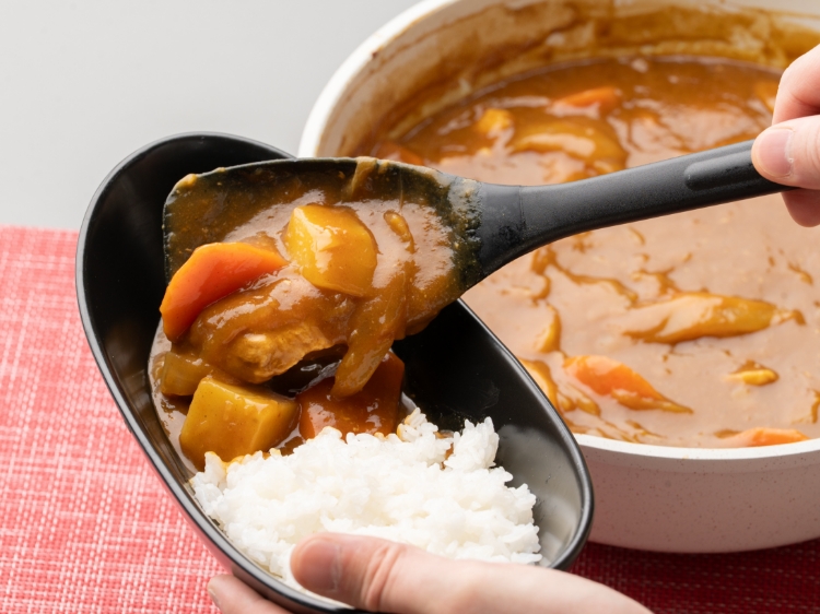 たとえばカレーや汁物もすくいやすいよう、スプーン部分には約40ccの容量を確保。深さがしっかりあるので、おたま代わりにも活躍します。