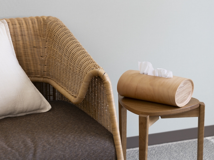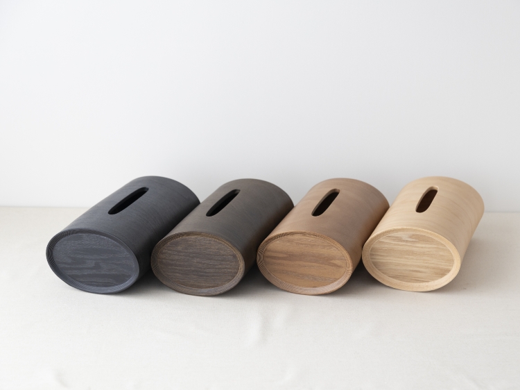 こちらはブナの木が持つ質感やフォルムのやさしさが人気のケースをコンパクトしたリニューアル版。日本の伝統製法を熟練の職人が加工したからこそ生み出される美しい曲線はそのままにスリム化しました。スリムタイプのボックスティッシュ、ソフトパックティッシュどちらも使えるのも嬉しいポイントです。