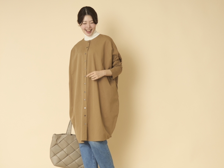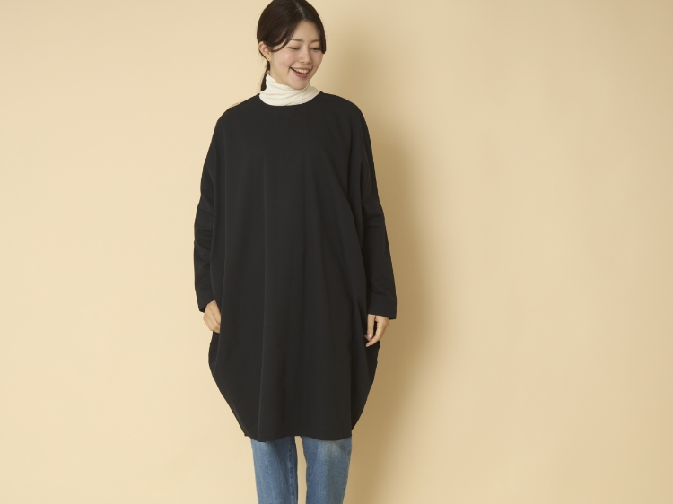 寒い時期にぴったりな暖かい生地の服がほしいけど、着膨れするのは避けたい、という方におすすめのアイテムがTUTIE.(ツチエ)から届きました。こちらはピーチ加工を施したチェニックで、微起毛による温かみがありながら落ち感があるので、太って見えないのがいいところ。着丈は100㎝とロングすぎないので、裾捌きがよく、動きやすいのも魅力です。