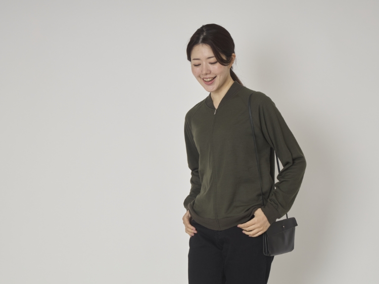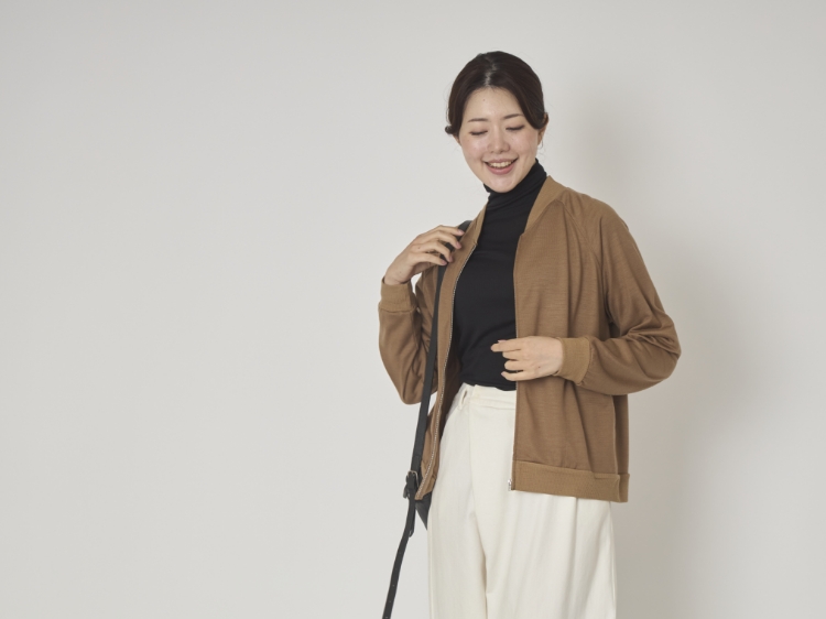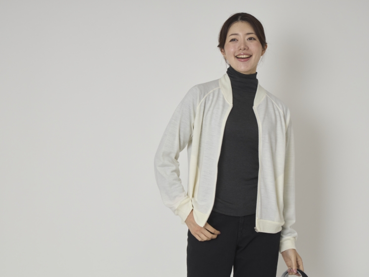 ウールのカットソー地のジップアップは、あまり馴染みがない方も多いと思いますが、着ぶくれせずにあたたかく過ごせて、汗による不快感も払拭。そのうえすっきり見えもかなえてくれるので、実際手にすると、その便利さが実感できるアイテムです。春まで着られる便利な一着をぜひお試しください。