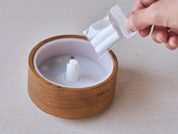 WERKE/アロマ加湿器 木製雑貨のようで家電っぽさがない、アロマ対応のコードレス卓上加湿器