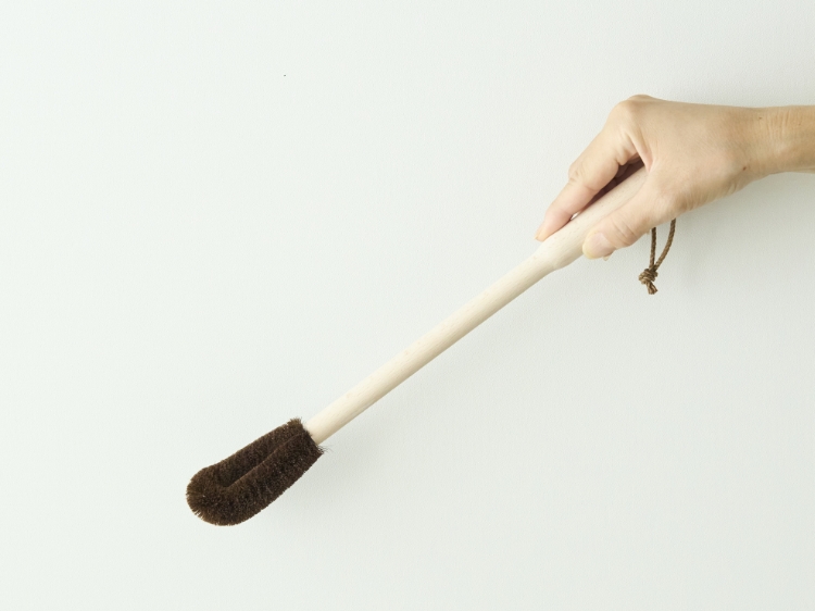 こちらは、たわしにぶな材の持ち手をつけ、奥まで届くよう工夫されたアイテム。さらに、たわしの真っ直ぐな部分が水筒内部の側面に添い、先端を少し曲げた靴下のような形が底の角に、それぞれしっかり当たって汚れを落とせます。水筒の隅の隅までこすることができ、気持ち良く汚れを落とせるのが嬉しいポイント。これまでは奥まできれいに洗えなかった水筒のお悩みも、すっきりと解消してくれますよ。