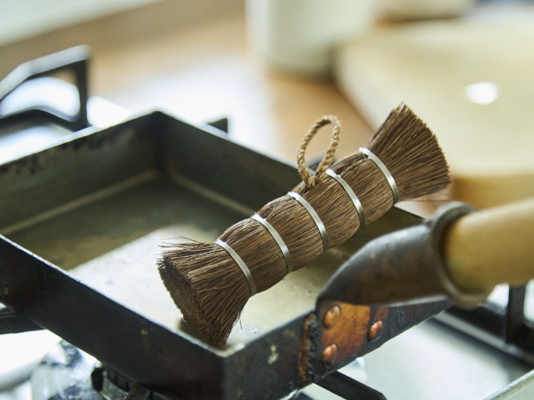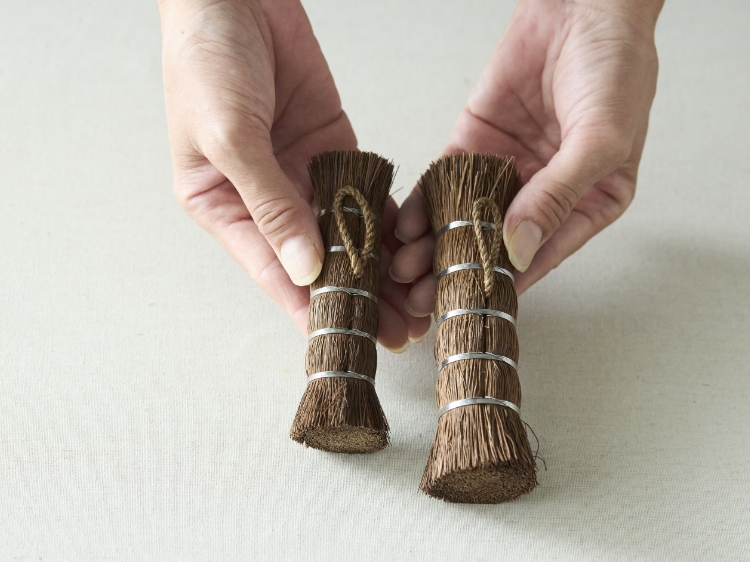 この問題を解決すべく、高田耕造商店が選んだのは、括り付けるのではなく、棕櫚(しゅろ)の中に編み込むような形にするという方法です。こうして緩みやすさという課題も解消できたこちらには、「長く使い続けてもらいたい」そんなつくり手の思いも詰まっています。