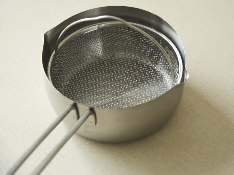 ザルの網が丈夫なのもポイントです。手で押してもべこべこしないくらいの強度があるので扱いやすく、長くお使いいただけます。