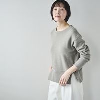 腰が隠れるくらいのちょうど良い着丈で、パンツ、スカートどちらとも相性抜群。きれいめのボトムスに合わせて通勤に、デニムに合わせて休日スタイルにと、幅広いシーンで活躍しますよ。