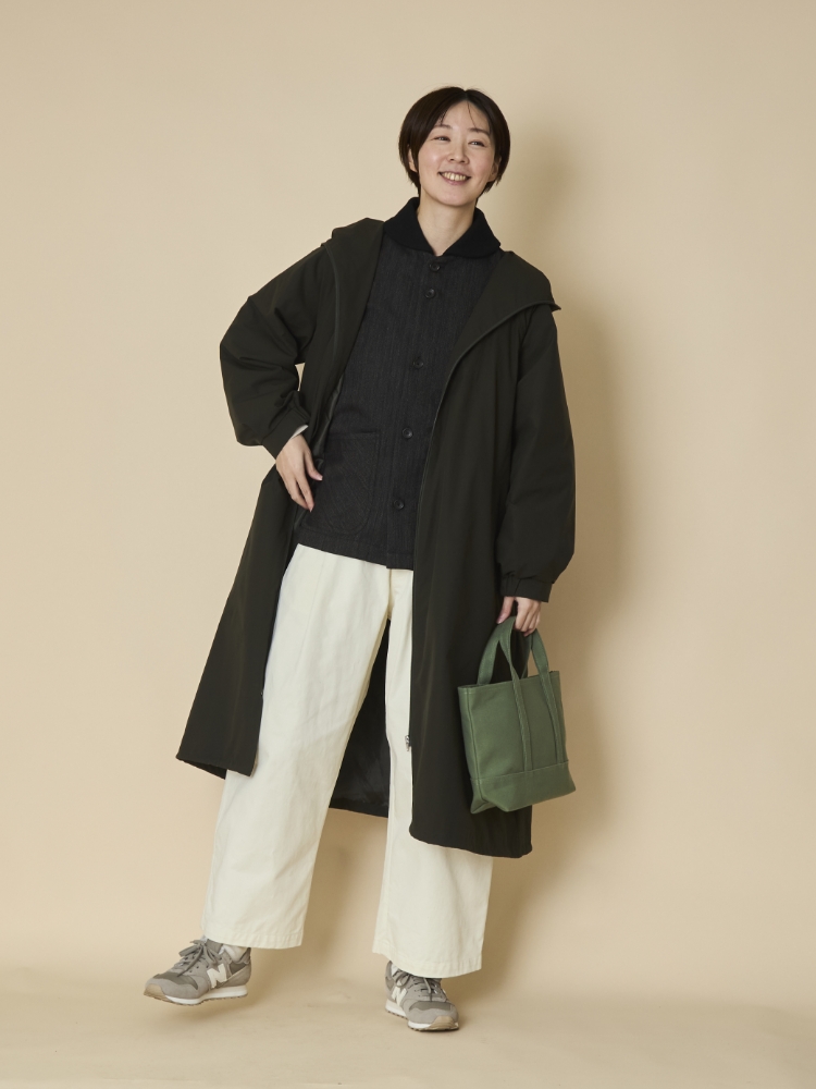 こちらは襟付きなので、インナーのデザインを気にせずに簡単に着られるのがよいところ。ジャケット感覚で羽織ることができます。まずは、手持ちのカットソーやTシャツに合わせて、慣れてきたらワンピースやスカートとのコーディネートも楽しいと思います。