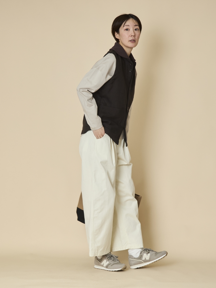 袖がないので、アウターを重ねてももたつきません。寒い時期にはインナーベストとして、コートの下に着るのもおすすめです。