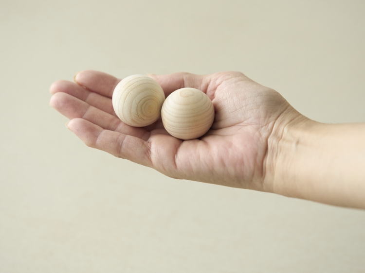 ヒノキには心身をリラックスさせ、ストレスを軽減する効果があります。お風呂に入れるだけでなく、肩や腕の上をころころさせれば、マッサージにもお使いいただけます。