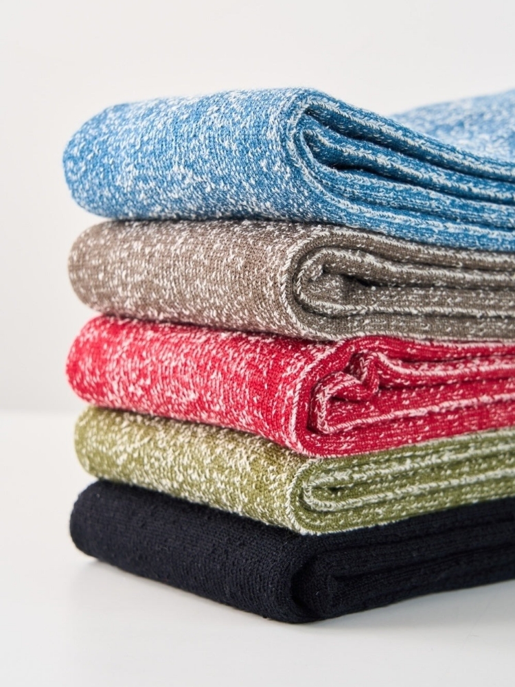 「パイル」とは、繊維を丸くループ状に編んだ生地のこと。タオルと同じ編み方で、汗をしっかり吸い取ってくれます。パイル生地は汗を吸い取りやすい上に、ふわふわで履き心地も抜群。足を包み込んでくれてとても気持ちいいんです。弾力がある生地感なので歩きやすく、スポーツやアウトドアなどよく動き汗をかくシーンでも快適に着用できます。