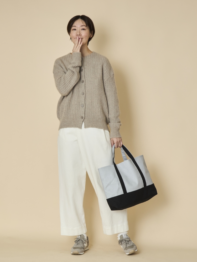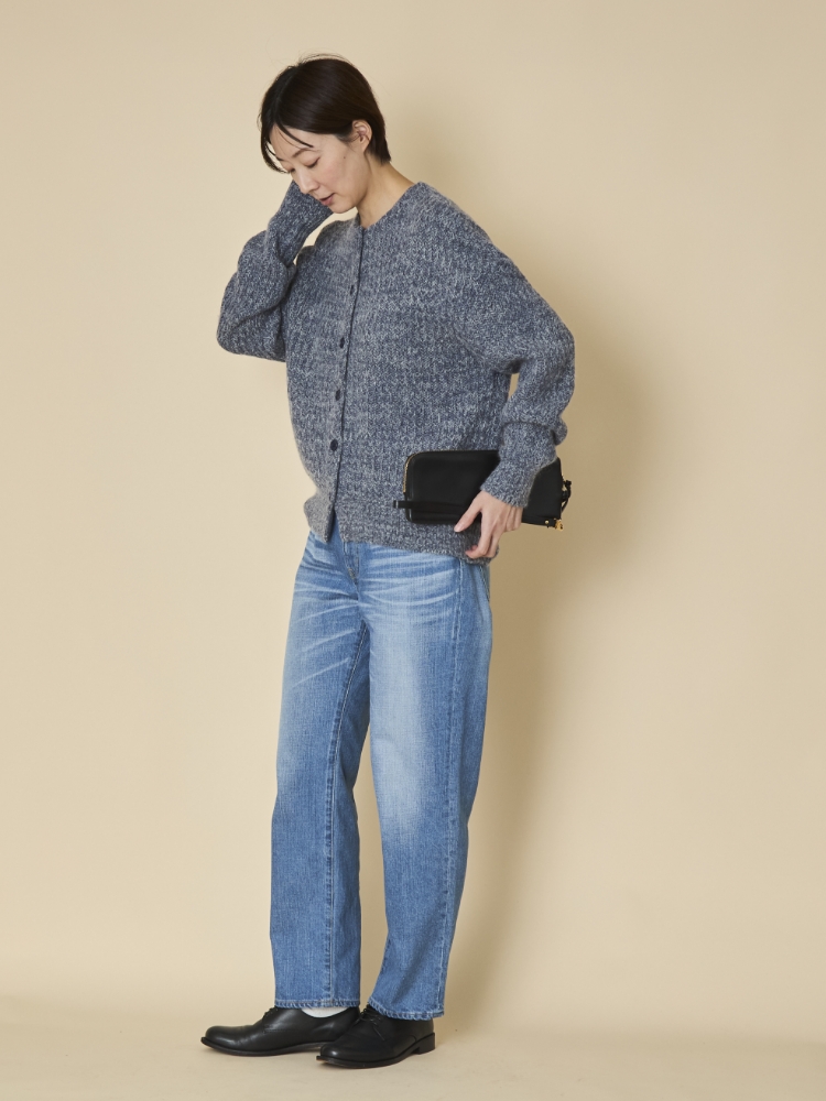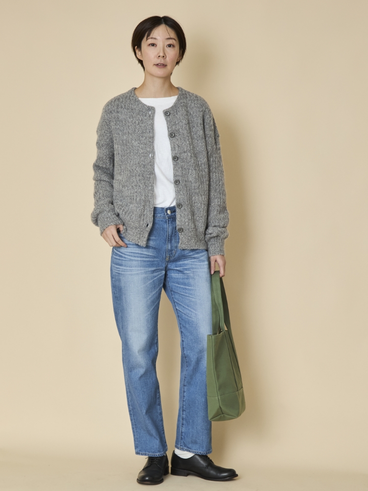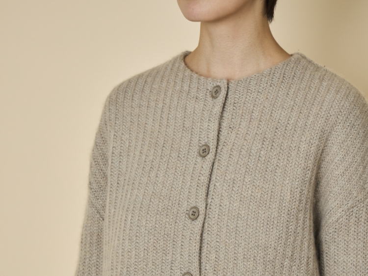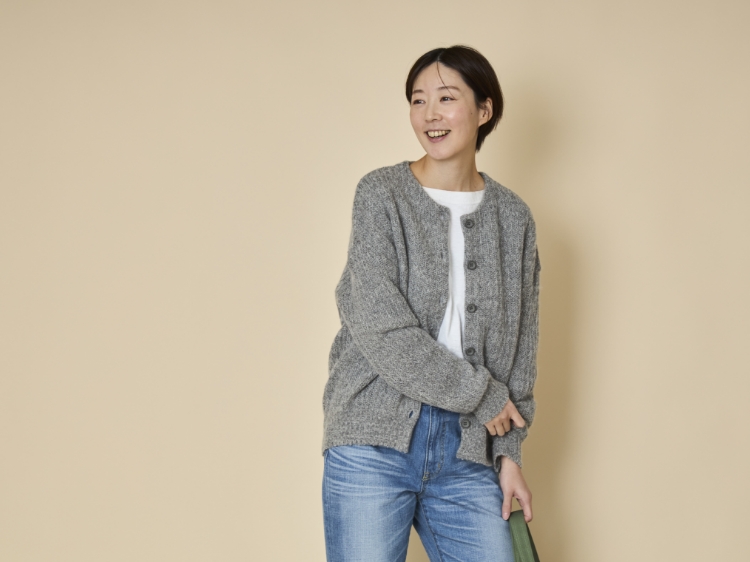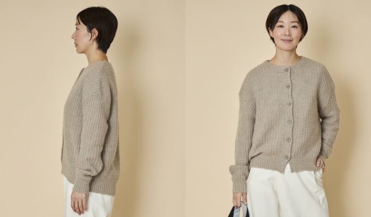 日本一のニットの産地、新潟県の五泉市でニット工場を営むSAIFUKU(サイフク)のラインナップに、カーディガンが仲間入りしました。アルパカ混のニットはあたたかさはもちろんですが、ふわっとしていて軽いのがいいところ。前から見るとすっきりして見えて、横から見ると丸みがあって上手に体の気になるところをカバーするという技ありの一着です。