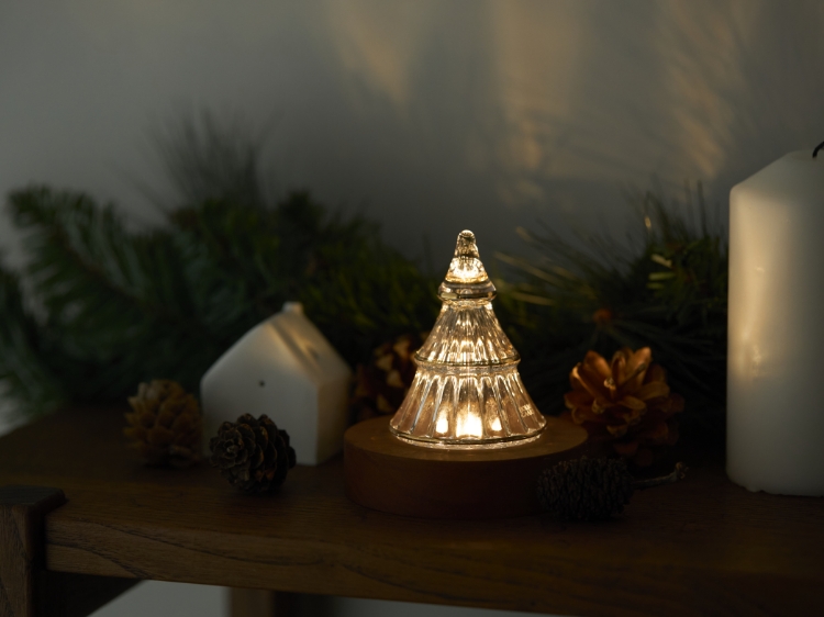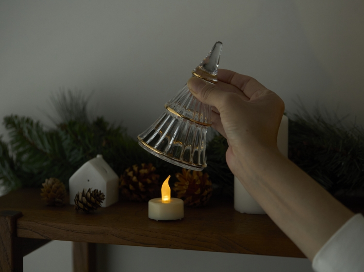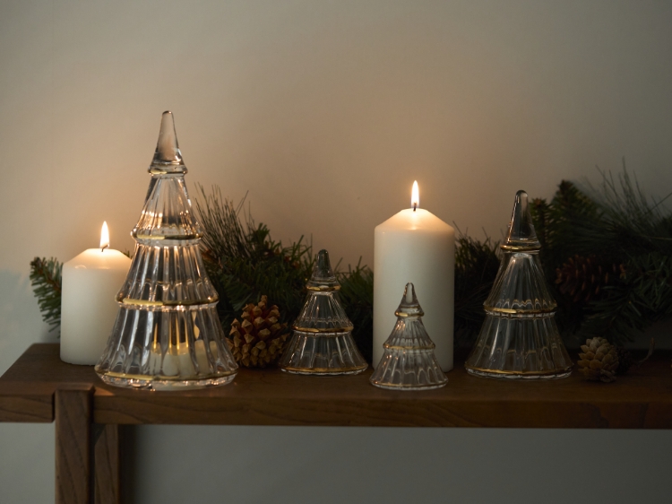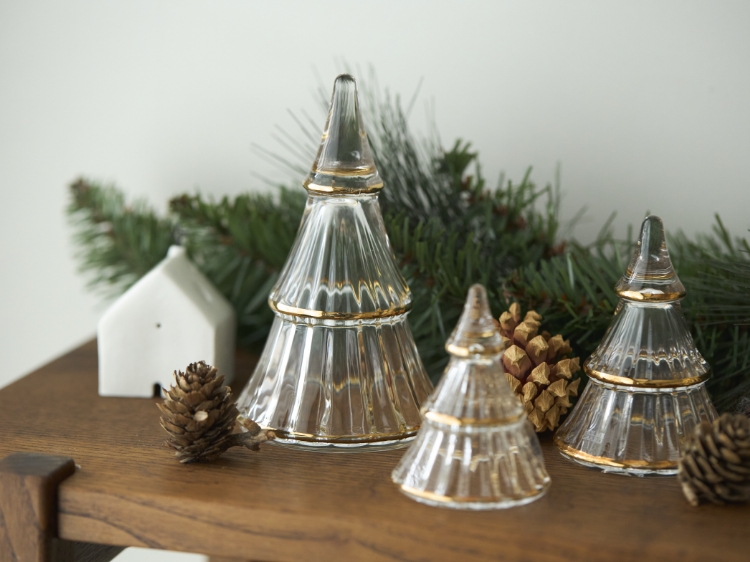 ホルムガードの「クリスマスツリー」は職人による、ガラス製のツリー。クラシックなデザインに加え、内部のウェーブによる光の屈折やゴールドのハンドペイティングは唯一無二の美しさです。複数のツリーを並べると森のように見え、幻想的な雰囲気に。シンプルな色使いだから、クリスマスだけでなく1年中飾ることもできますよ。