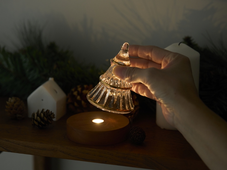 M、L、XLサイズは一般的なティーライトキャンドルを中に入れることができますよ。ゆらゆらと揺れるキャンドルの火がツリーを引き立てます。