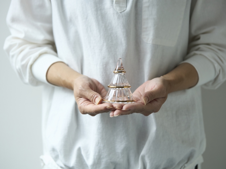 こちらのクリスマスツリーも熟練した職人により、ハンドメイドで作られています。奇をてらわない、クラシックなデザインです。ただ、よくあるクリスマスツリーとは一線を画す、細かいデザインが魅力。内側に施したウェーブによる光の屈折とゴールドのハンドペインティングが本当に美しいです。窓辺やライトの光が当たる場所に飾ると、光がキラキラと反射して、美しさに磨きがかかります。