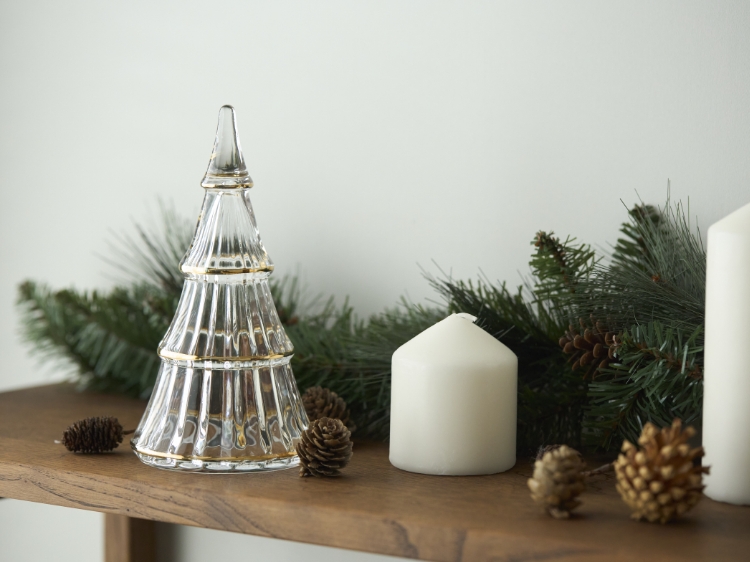 ホルムガードの「クリスマスツリー」は職人による、ガラス製のツリー。クラシックなデザインに加え、内部のウェーブによる光の屈折や手書きによるゴールドのラインは唯一無二の美しさです。複数のツリーを並べると森のように見え、幻想的な雰囲気に。シンプルな色使いだから、クリスマスだけでなく1年中飾ることもできますよ。